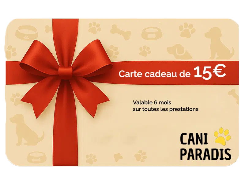 Offrir une carte cadeau Cani Paradis de 15€, c’est offrir bien plus qu’un simple présent : c’est offrir du temps, de la compréhension, du lien, et une expérience positive pour chaque duo humain/chien.